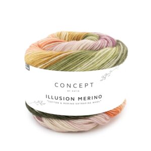 Illúzió Merino egy innovatív és sokoldalú fonal, amely a következőkből áll: 70% pamut en 30% merino extrafinom szupermosásEz a puha és légáteresztő fonal kifejezetten takarókhoz, sálakhoz és nagyobb projektekhez készült. Extra nagy, 200 g-os gombolyagméretének köszönhetően ideális azok számára, akik kevesebb szálcserét szeretnének munka közben.